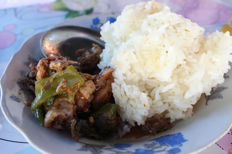 あとで調べて知ったことだけど、ラオスで食べられるお米は基本的にもち米(カオニャオ)で、地元の人は手で食べる。