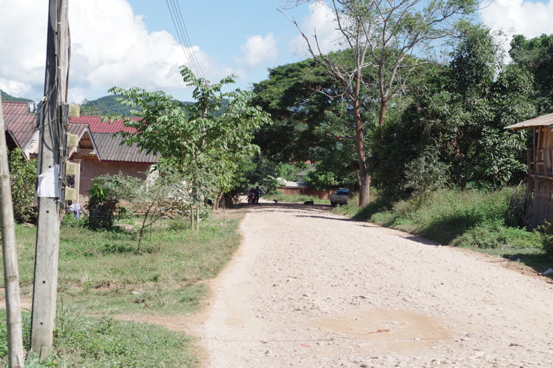 村に入ると、一気にデコボコの石だらけに。