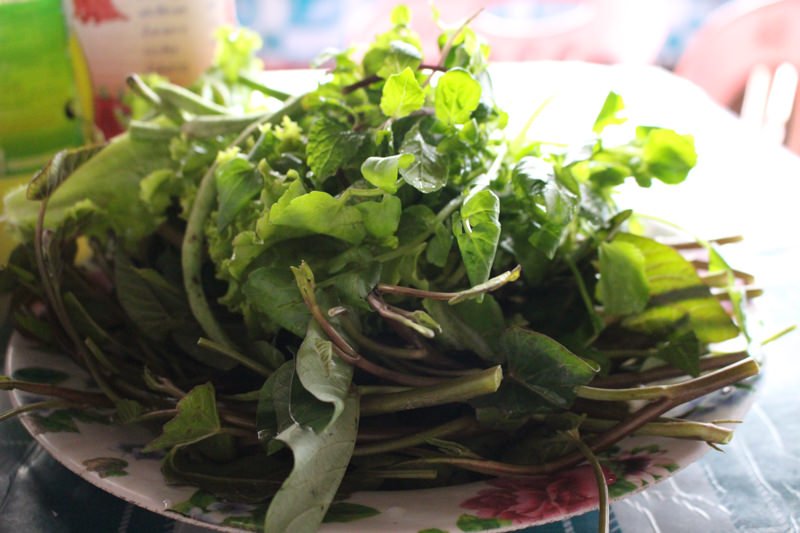 野菜が別添えで大盛りで来るのがルアンナムター流(ラオス流?)らしい。