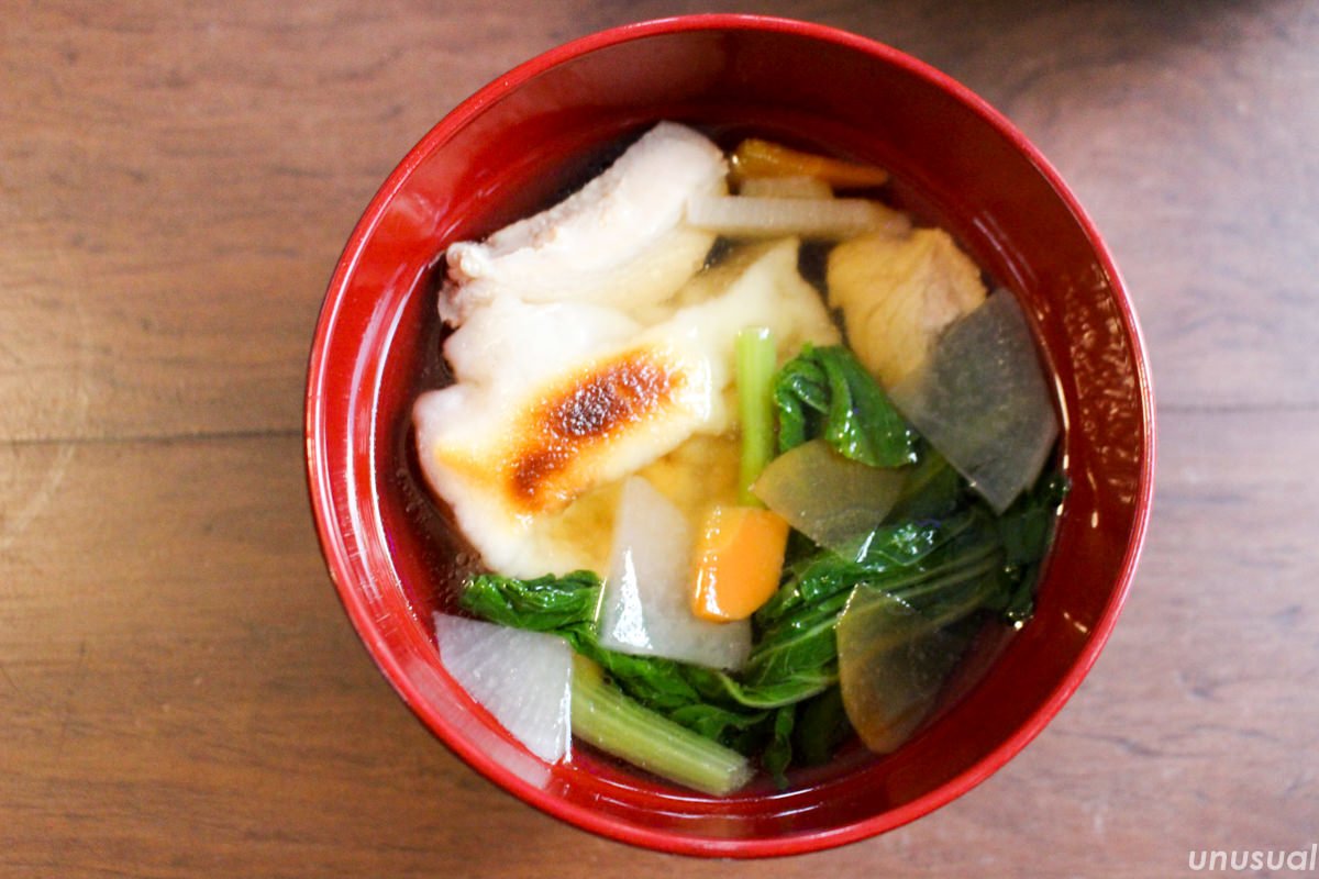 ▼お雑煮。ヨシさんが出汁をとるところから作ってくれて、絶品