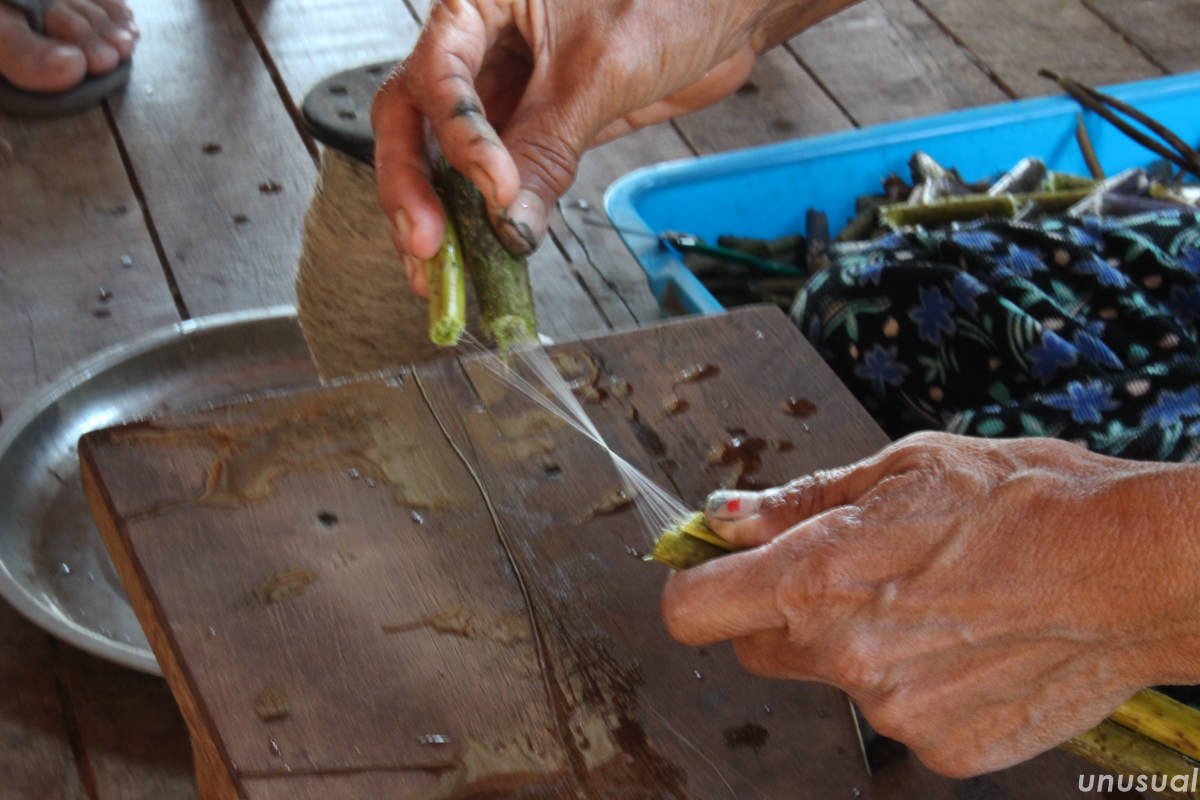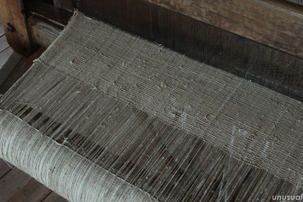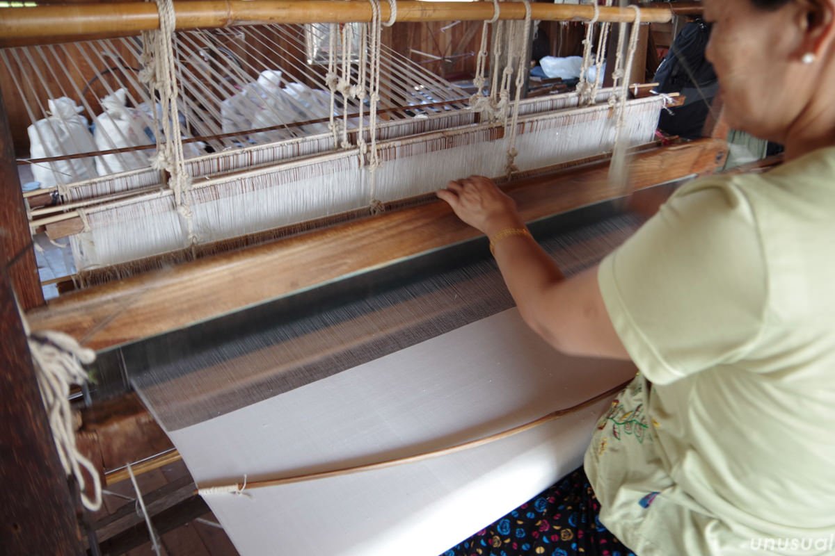 まず、ハスの糸で作った織物のお土産屋さんへ連れて行かれた。