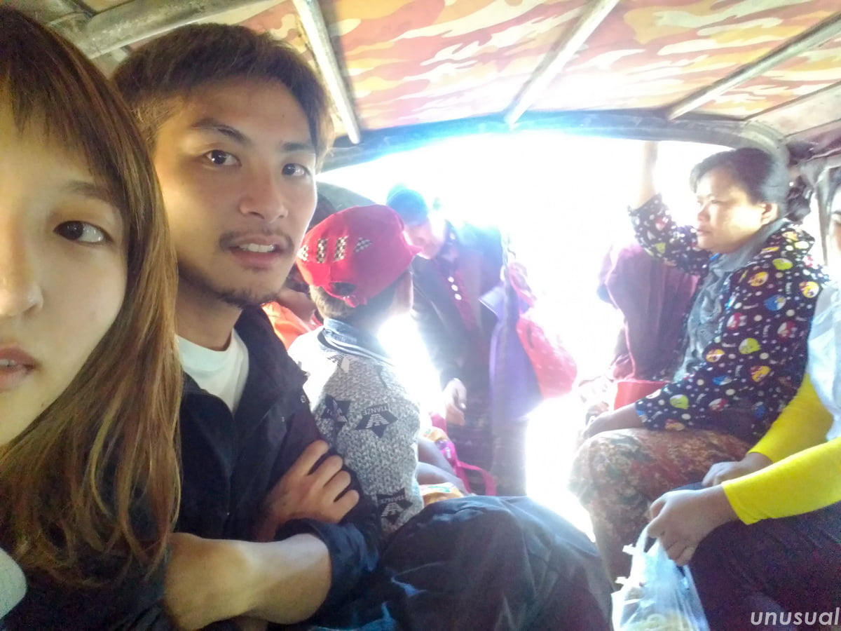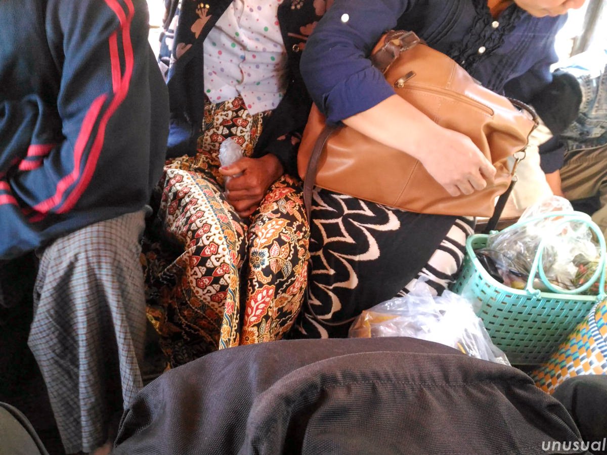 サークルのところに近づくとすぐにおじさんに、「マンダレー?」と聞かれ、ついていくとすでにたくさんの乗客でパンパン。