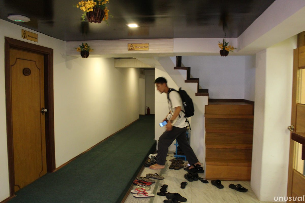 ▼靴は脱ぎます。階によっては天井が低いので注意