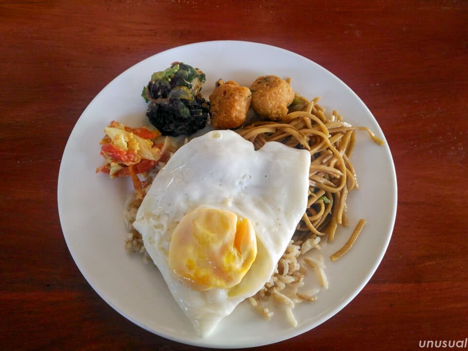 この宿の部屋はそんなに良くないし、朝食は棚ぼただから期待していなかったけど、予想外のバイキング形式でバックパッカーにとってはかなり豪華だった。