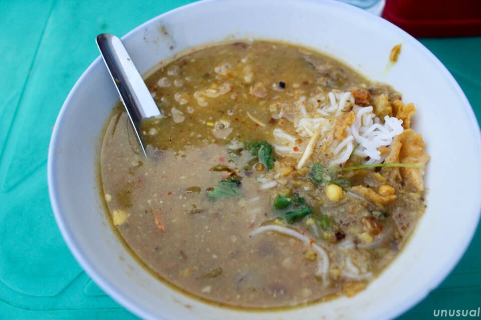 他にいい店はなかったので、仕方なく商店でカップ麺を買い帰り道を歩いていると、モヒンガー屋台があった。