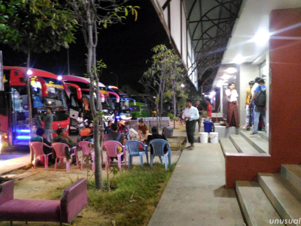ヤンゴンへの夜行バスはニューバガンにあるバスターミナルから出るようだが、宿までピックアップの車が来る。