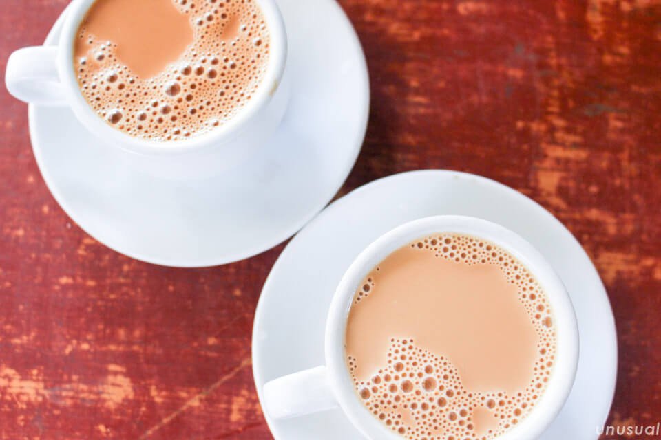 中国風のヌードルや緑茶もあれば、カレー味の料理やインドのチャイに似たミルクティー(ラペイエ)もある。