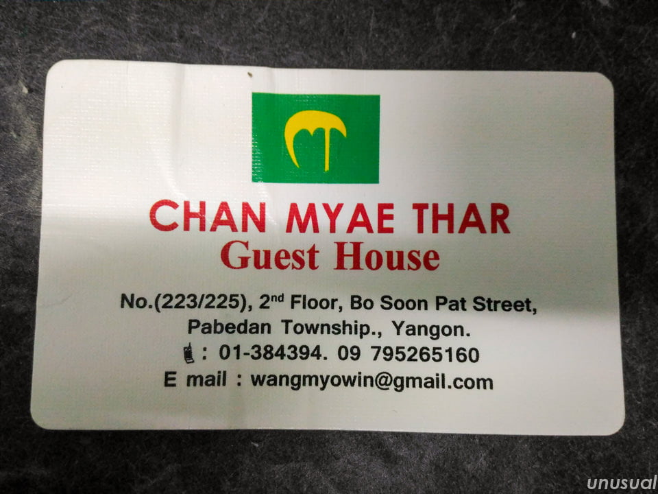 ヤンゴンで泊まった安宿は、CHAN MYAE THAR Guest House(チャンミータールゲストハウス)です。