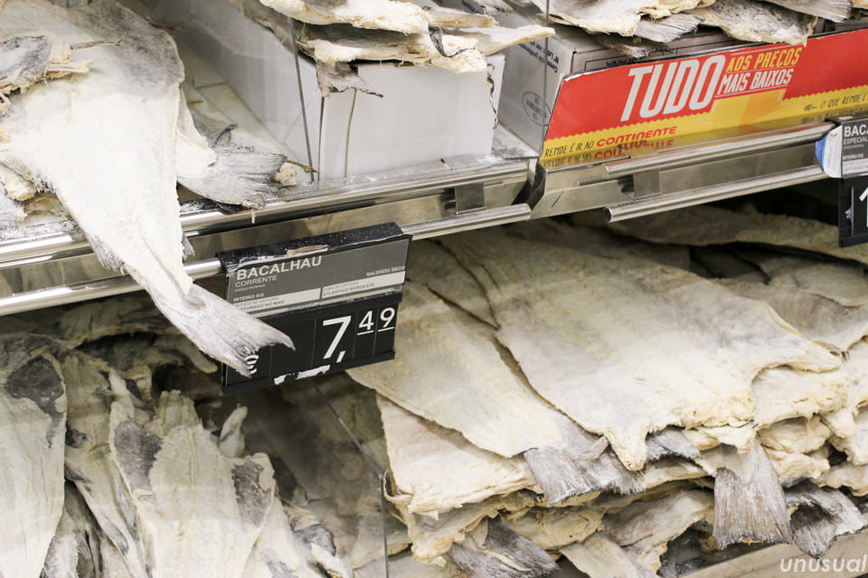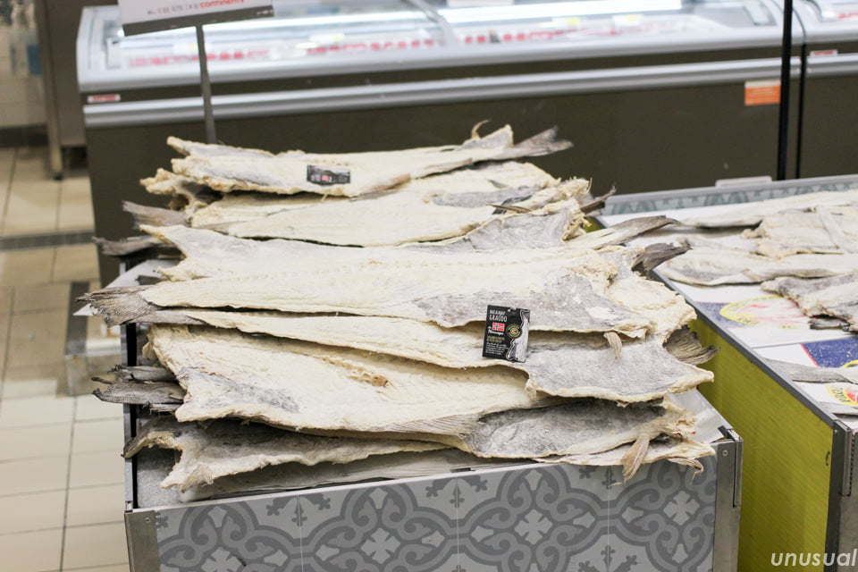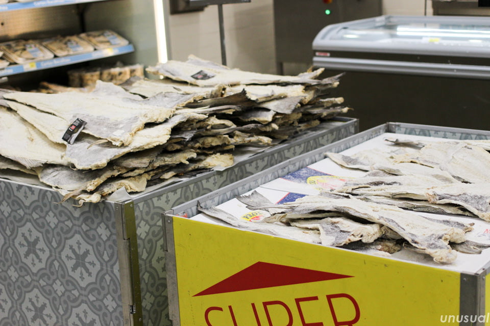 これは相当家庭に浸透した食材だな?と思って調べてみると、やはりポルトガル料理には欠かせない「バカリャウ(Bacalhau)」というタラの塩漬けの干物でした。