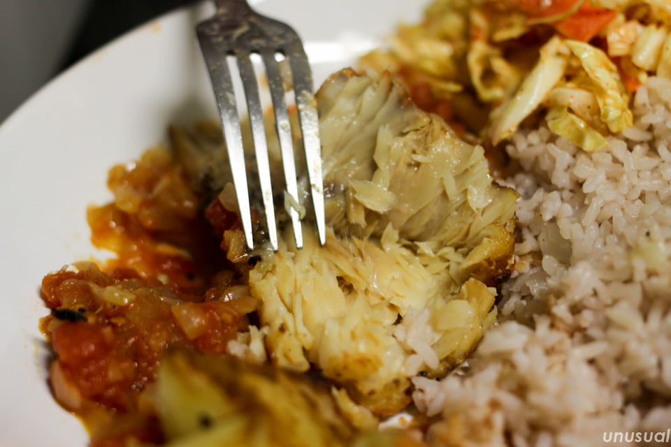 うまい!というほどではないですが、味は想像していたとおりの干し塩ダラの味で、おいしかったです。
