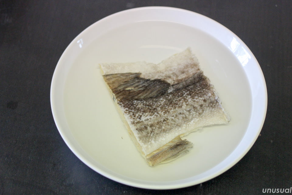 ですが、私たちが買ったバカリャウは小さくて薄いので、水抜きは1日だけにしました。