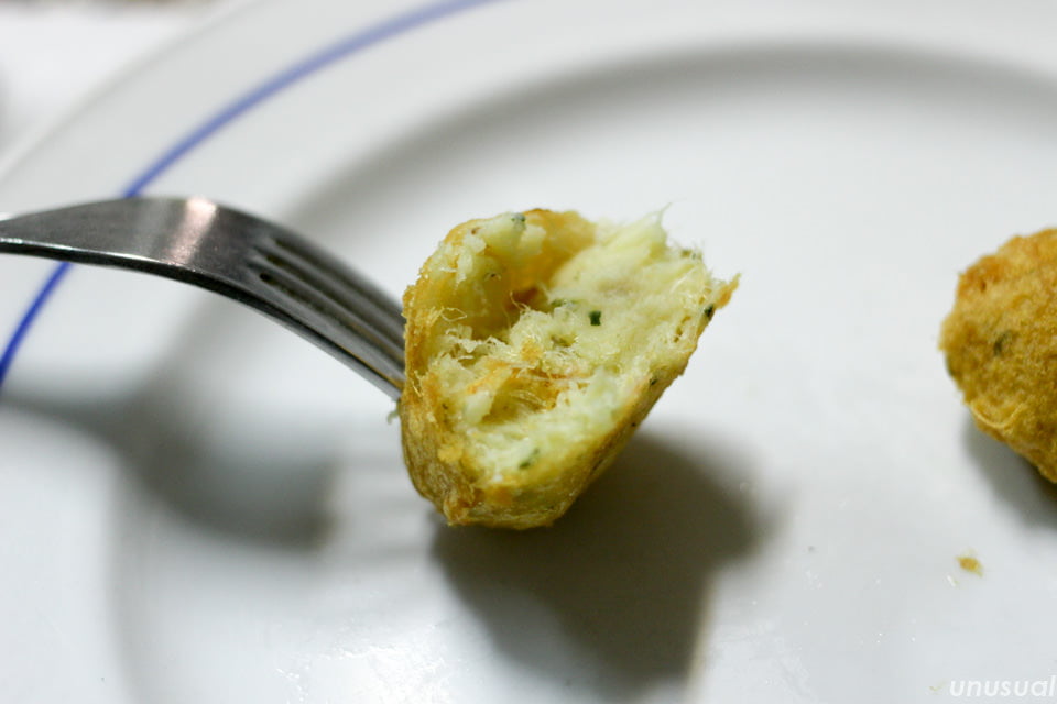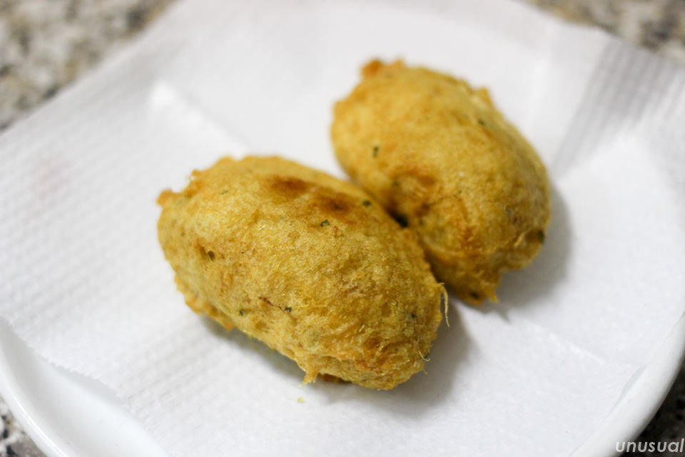 タネはバカリャウとじゃがいもを混ぜたもので、味付けは塩だけというシンプルなコロッケです。