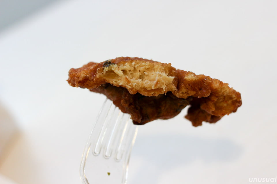 サクサクでもなくふわふわでもなく、揚げてから時間が経ったような、ちょっと脂がしつこい感じでした。