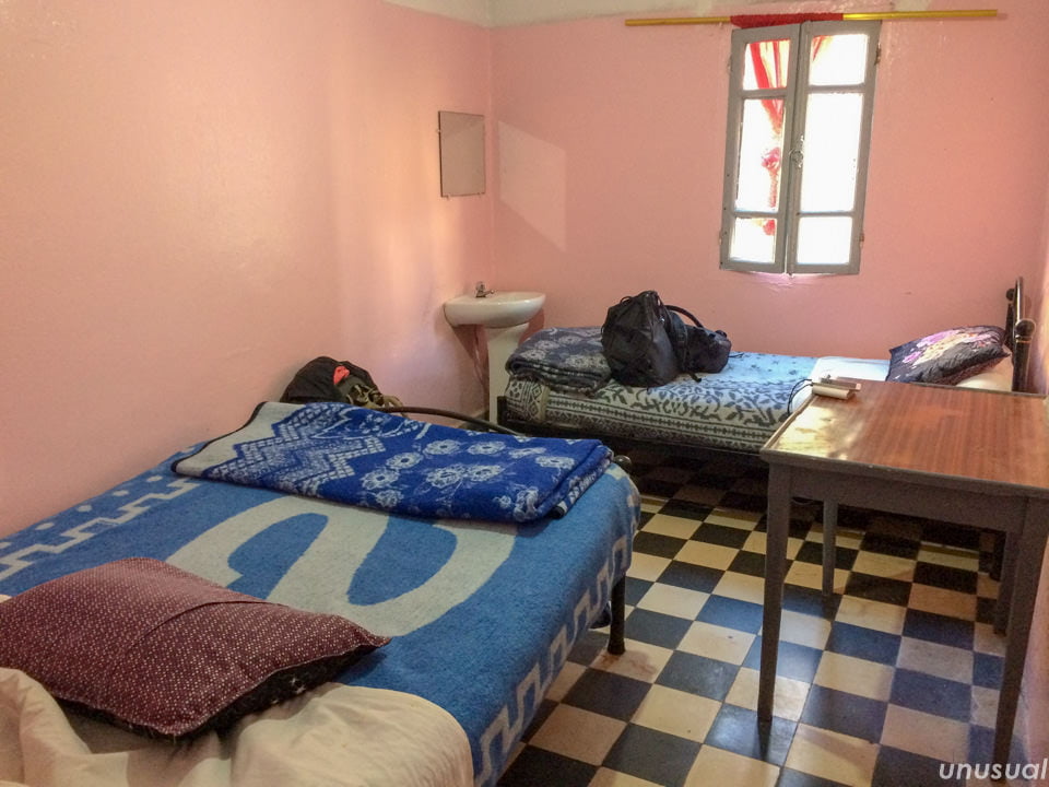 安宿はマルシェ・セントラル(中央市場)近くのメディナ入口すぐのところにいくつもありますが、ダブルルームは120DH~200DHでシャワーは別料金のところが多かったです。