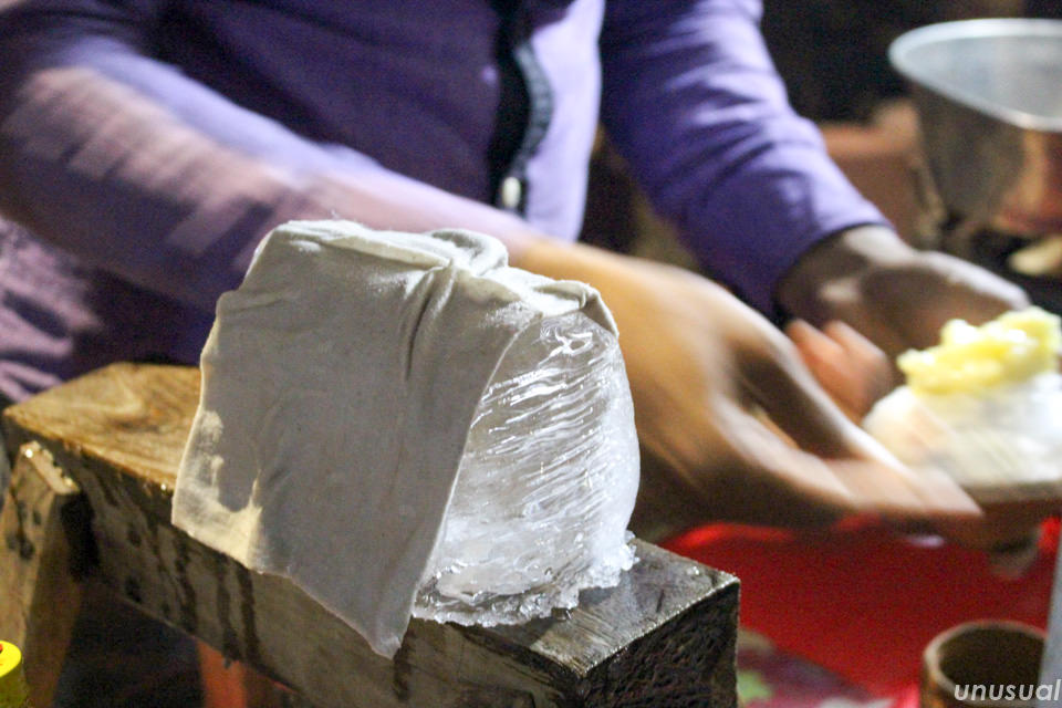 チェックアウトをして、宿併設のレストランにいたら、スタッフがなにかを食べている。