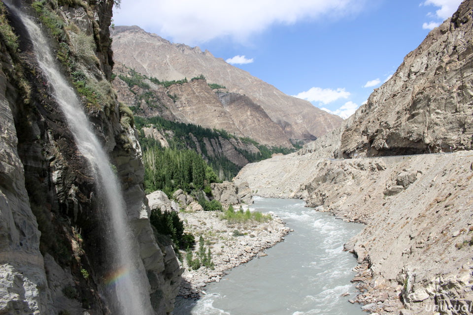 右は砂利道、左はそのままカラコルムハイウェイ沿い。