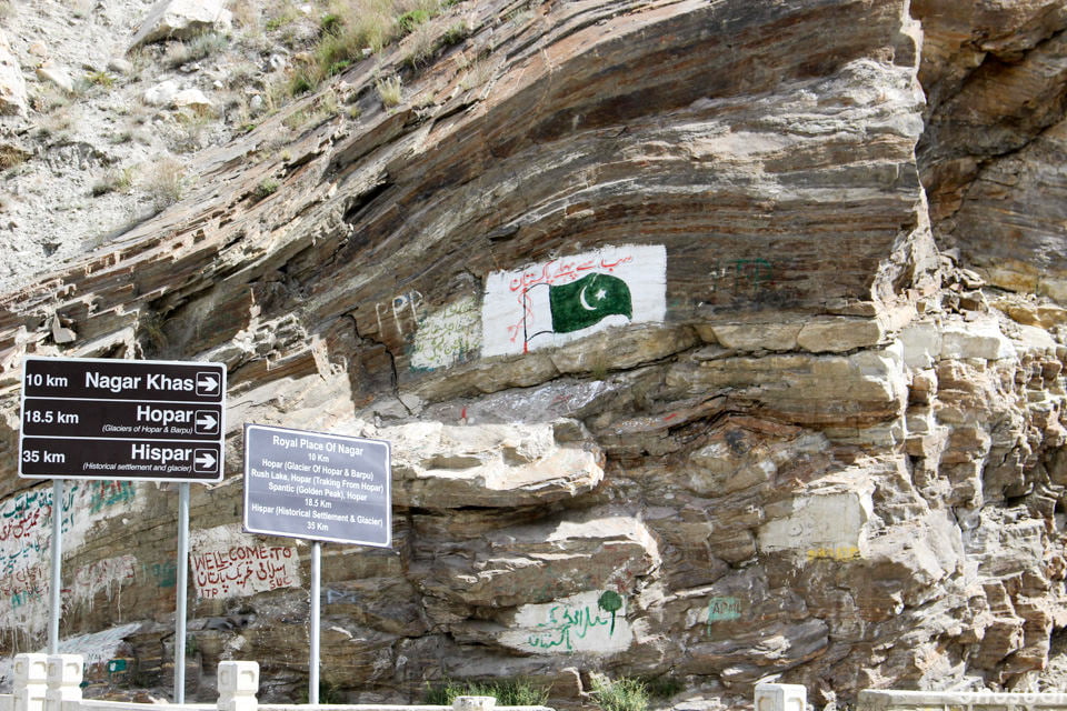▼カラコルムハイウェイによく書いてあるパキスタン国旗