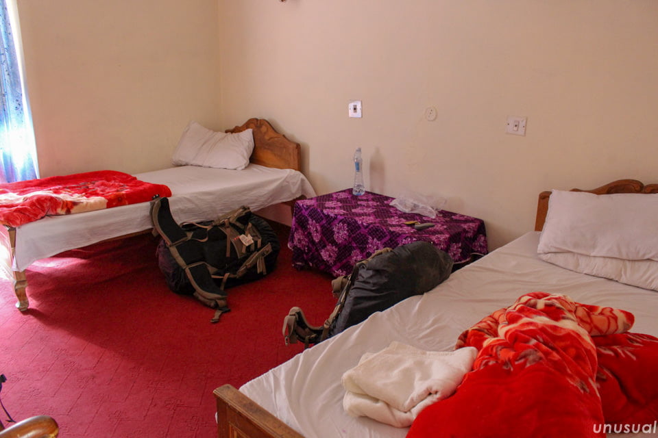 歩いて宿を探して、800ルピーの宿で決めようかと思ったところで客引きに声をかけられ、500ルピーの部屋があると言われた。
