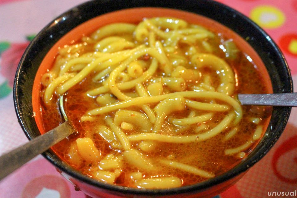 おいしそうなスープ麺を出しているところを見つけて、一杯もらった。50ルピー。