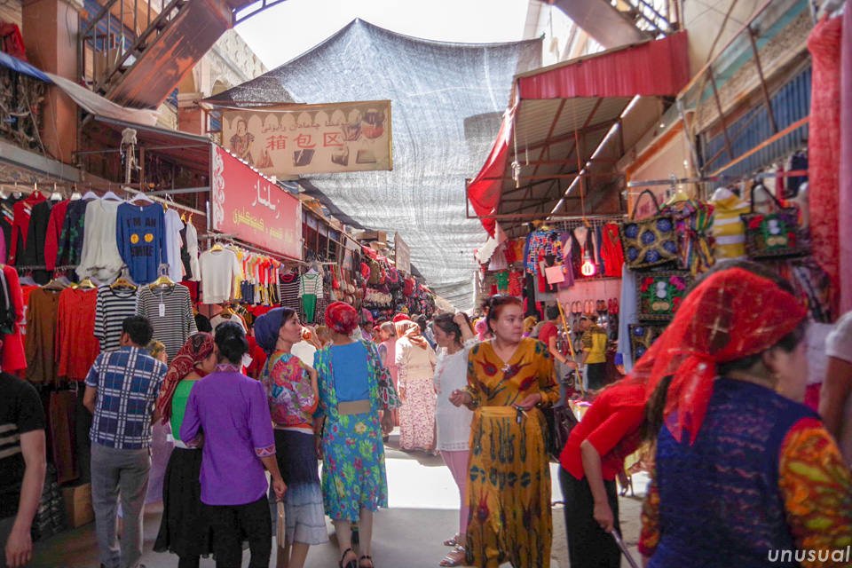 商品は女性物の服が多く、客もウイグル人の女性が多い。