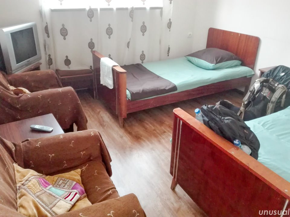 私たちが泊まった部屋は、トイレ・シャワー共用のツインルームで、二人で6000ドラム(約1372円)でした。