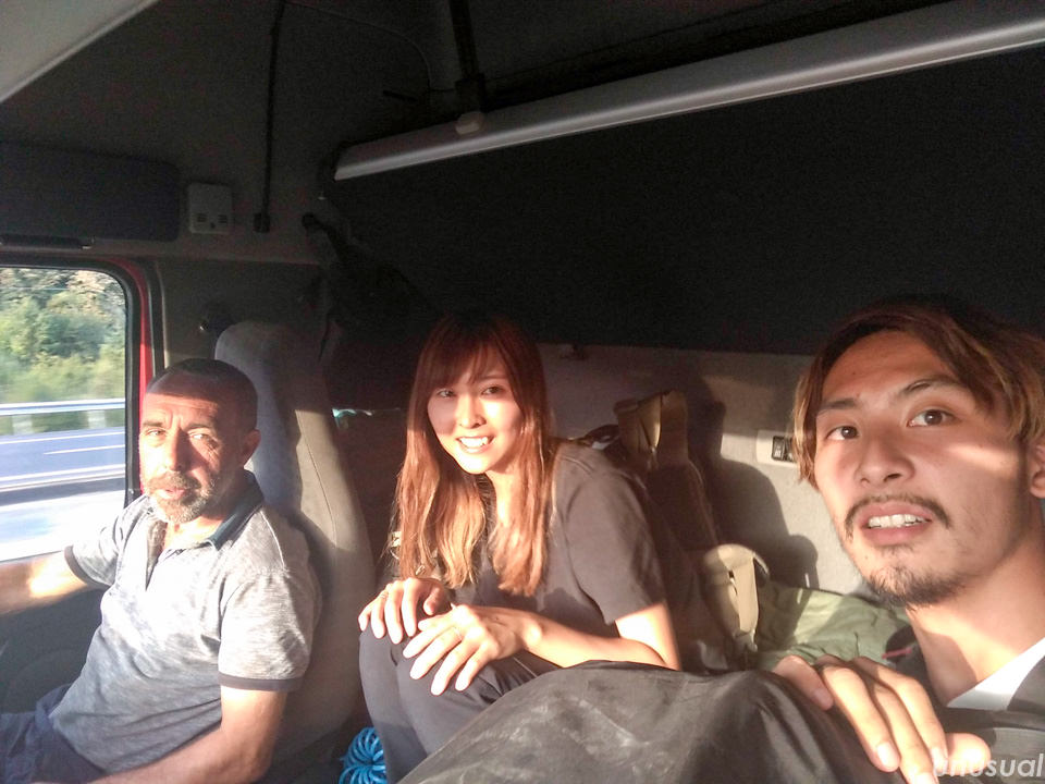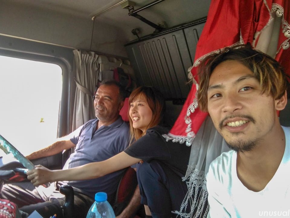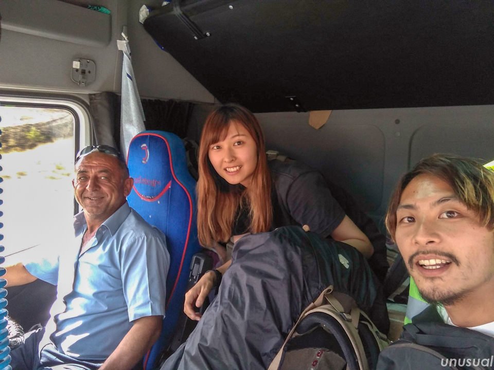 少し遠くにトラックが停まったので、私たちが気づかずヒッチハイクを続けていると、わざわざトラックから降りて私たちを呼び寄せてくれた親切なトラック運転手サルハさん。
