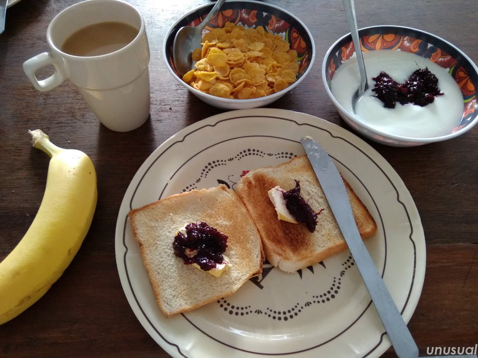 →メニューは一般的な朝食ですが、ヨーグルトとバナナがあるのがかなり嬉しかったです。