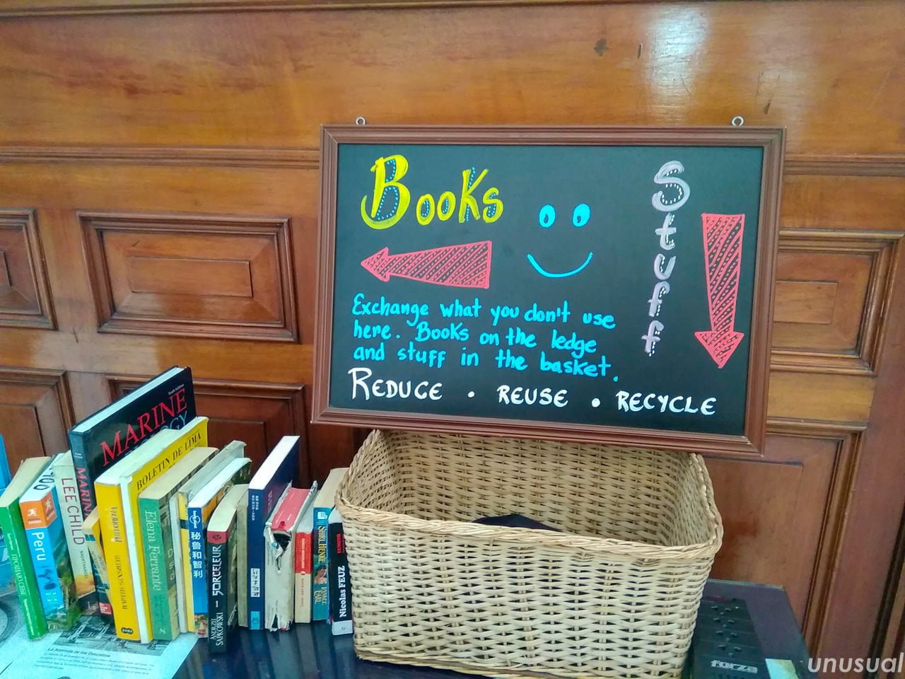 →フリーボックスがあるので、ボックスに入っているものをもらったり、いらないものを置いていったりすることができます。わたしは、レギンスがあったのでもらっておきました。