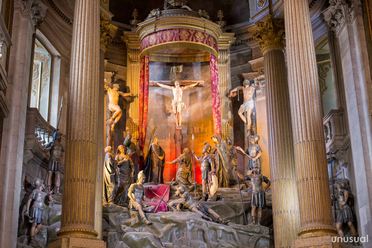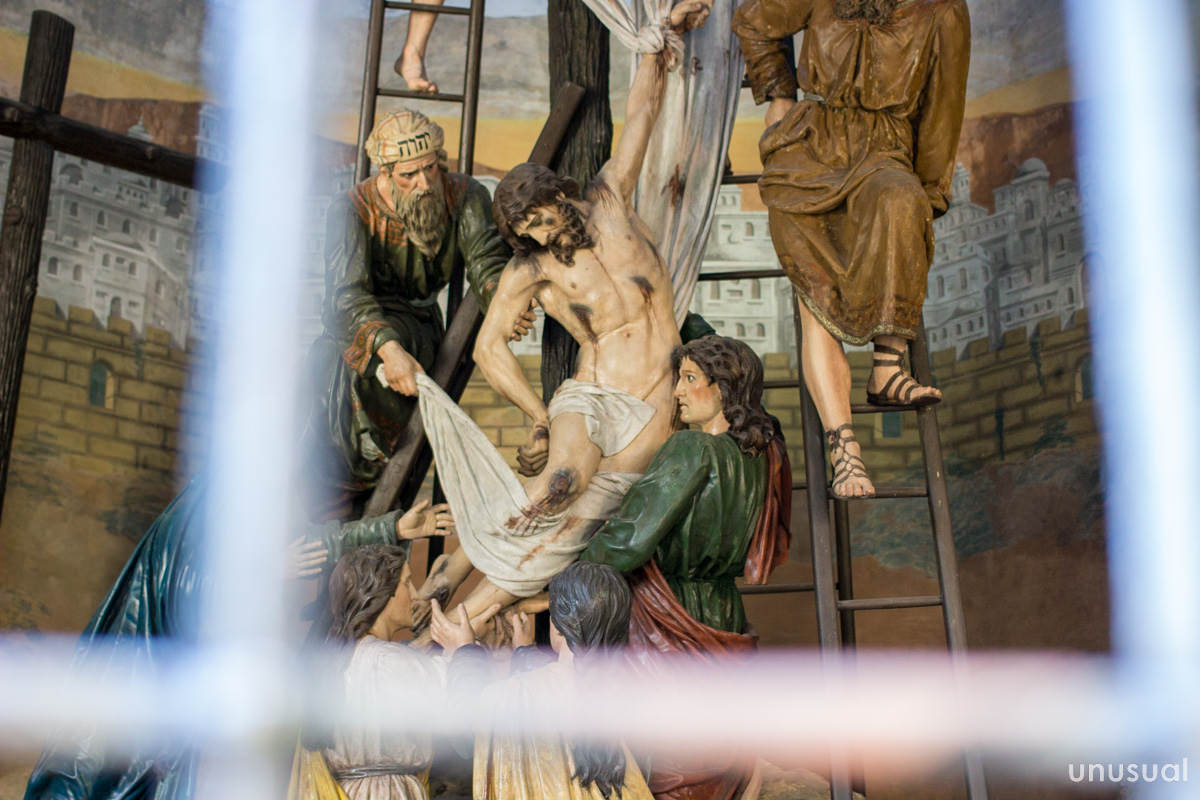 歩いていると所々に現れるお堂には、キリストの受難のようすが彫られた像が収められている。