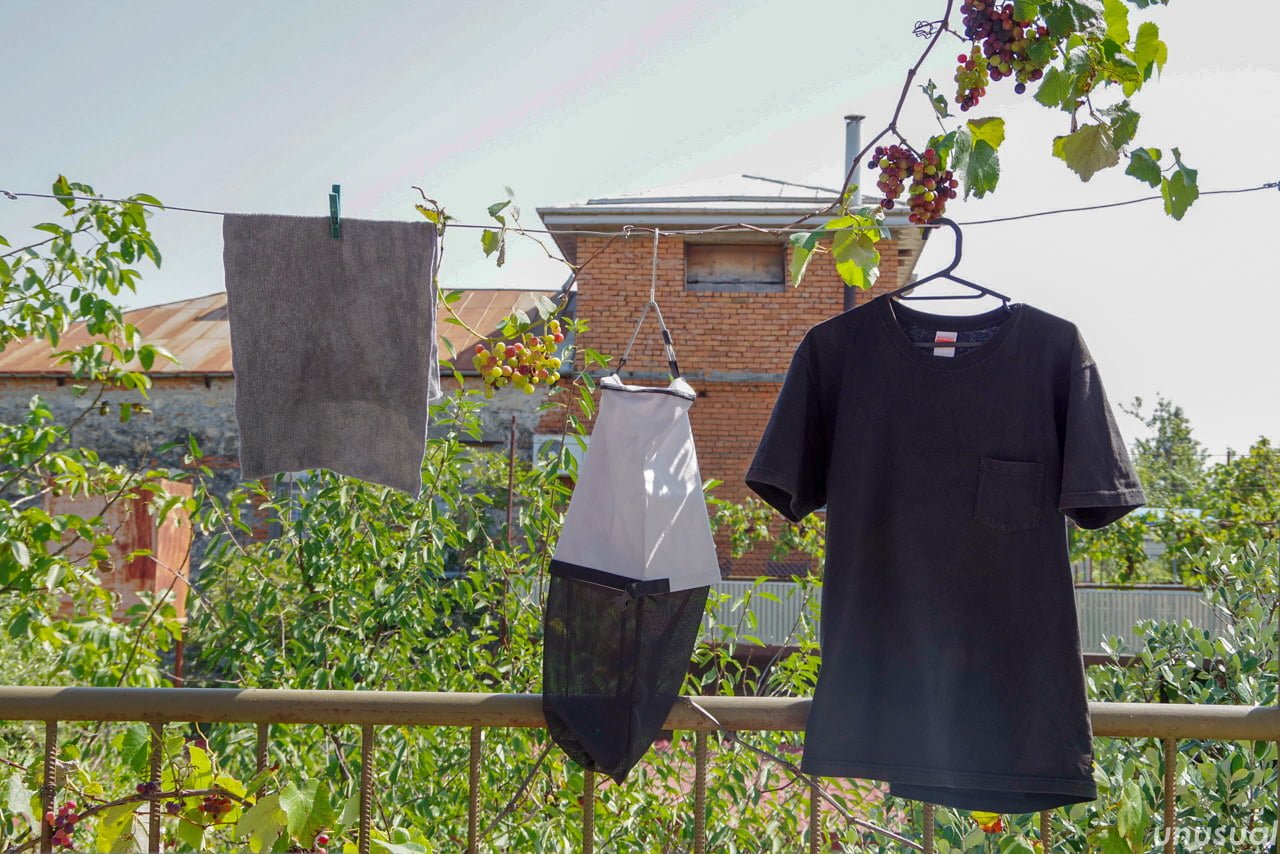 このTシャツは7.1オンスとかなり分厚く、その生地感が特徴でもあるのですが、旅行中に手洗いした場合けっこう乾きにくいです。