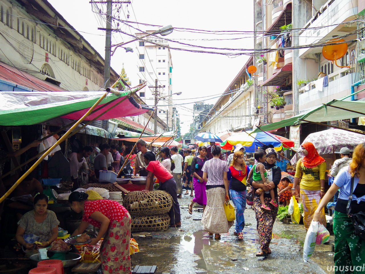 筒状の布を腰に巻きつけるスカートのようなもので、ヤンゴンの街中では男性も女性も多くの人が着ていました。