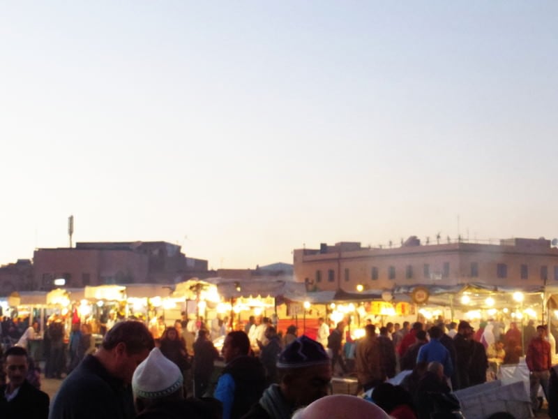 ジャマ・エル・フナ広場を中心に大小様々な道が入り組み、沢山の店に沢山の人が集まっている。