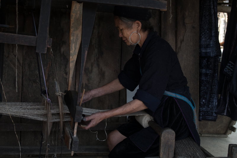 織物屋の中に入ると、機織りの様子を見せてもらうことができた。